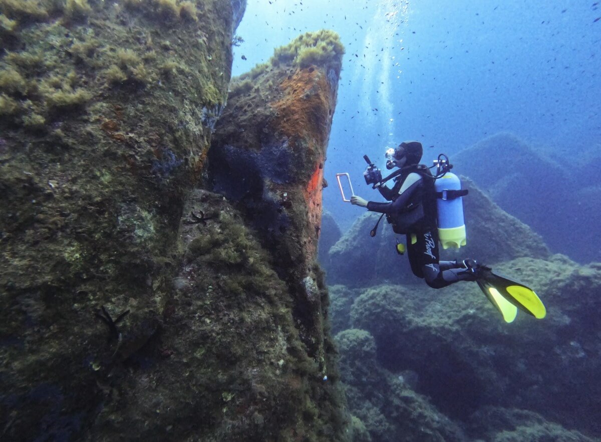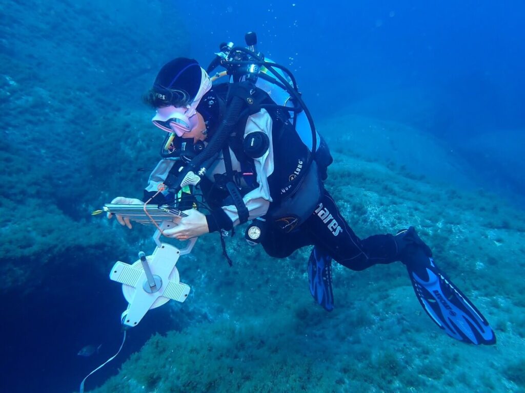La première journée a été consacrée à l’enseignement théorique dispensé par les experts de Septentrion Environnement et de l’Université de Sassari (Fabio Menna). Le lendemain, l’équipe de gestionnaires de l’AMP — administrée par la commune de Villasimius — a pu mettre en pratique ces connaissances lors de deux plongées autour de l’île de Cavoli.